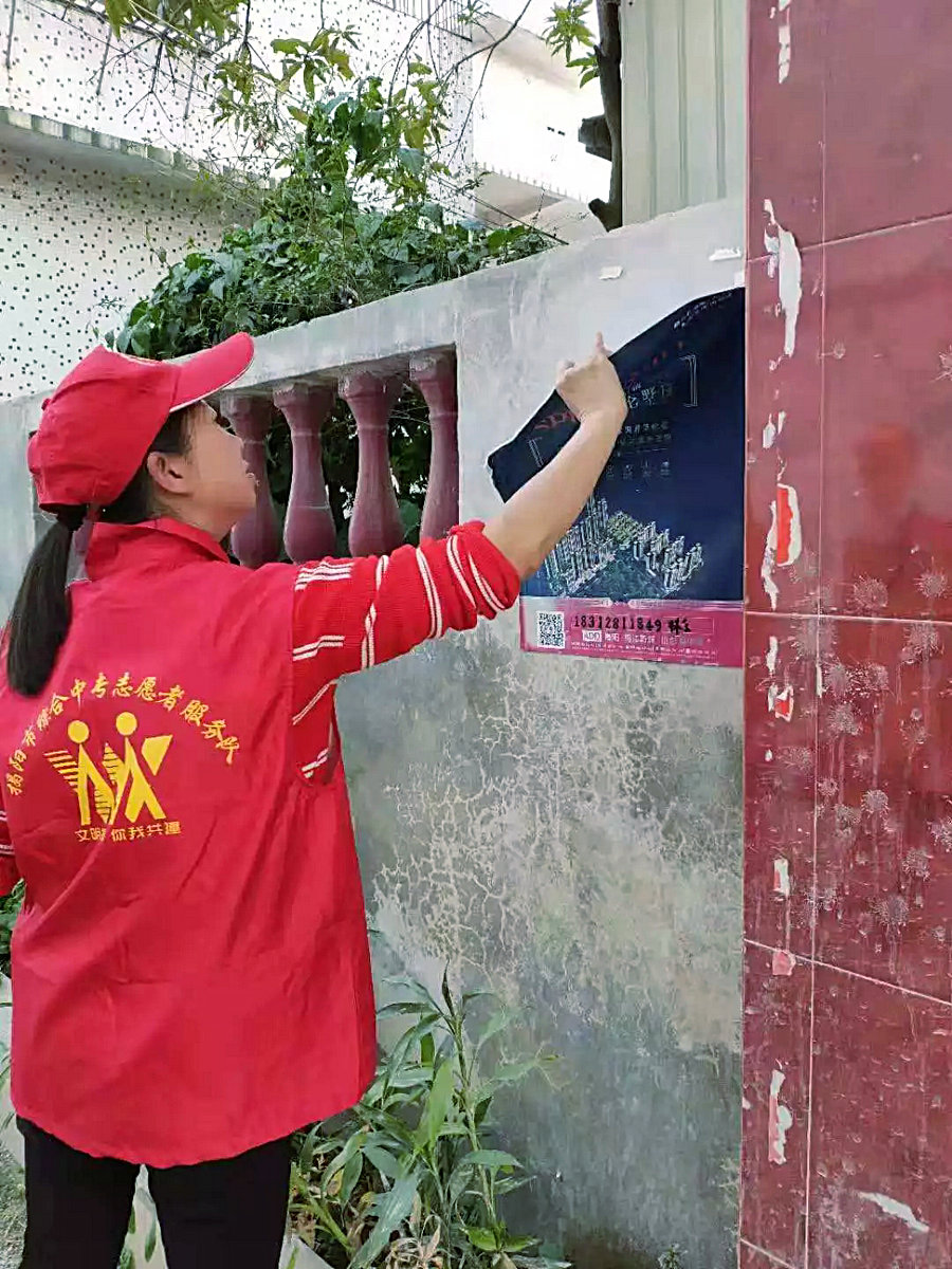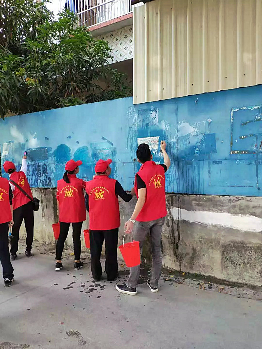名教职员工积极响应市委号召,到学校创文帮扶单位渔湖镇参加创文志愿服务活动,本次活动主要是清除渔湖镇辖区港口村沿街墙壁乱张乱贴等“牛皮癣”和清扫沿街道路垃圾。
