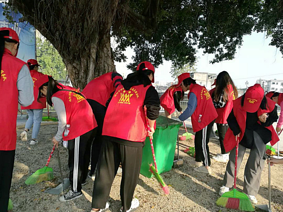 为助推“创文”工作深入开展, 12月22日(周六)下午,我校师生志愿者服务队一行16人在杨丹华副校长的带领下走上街头,走进社区,到结对帮扶镇渔湖镇开展“师生齐动手、共创文明城”的环境卫生大清洁活动。 经过师生们的共同努力,渔湖镇中心区的镇前街、桥头公园、中路路口等地方的环境卫生都变得更加整洁干净。师生们也用实际行动为营造文明城市的良好氛围和进一步推进社区创文工作做出了自己力所能及的贡献。 撰稿:创文办 审核:杨光