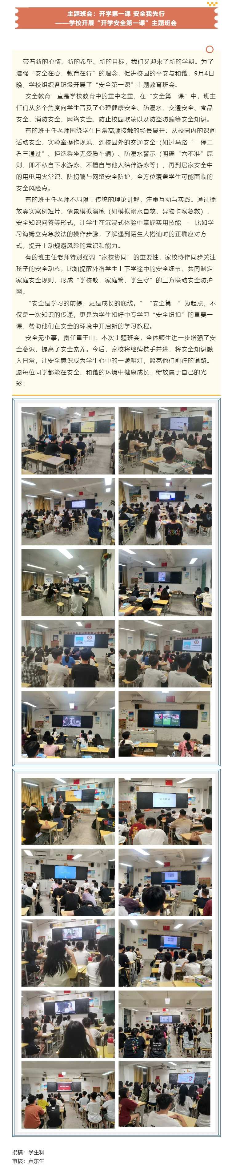 主题班会:开学第一课 安全我先行——学校开展“开学安全第一课”主题班会
