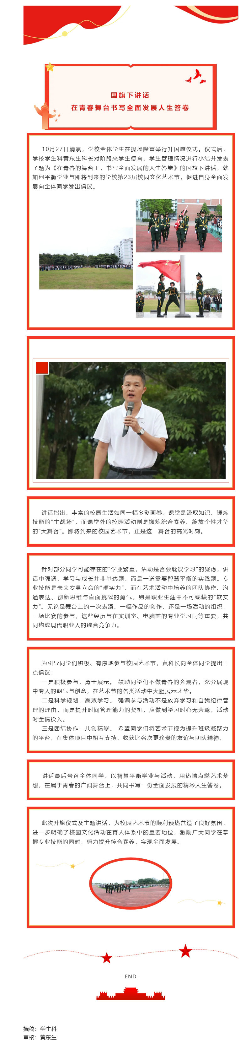 国旗下讲话:在青春舞台书写全面发展人生答卷
