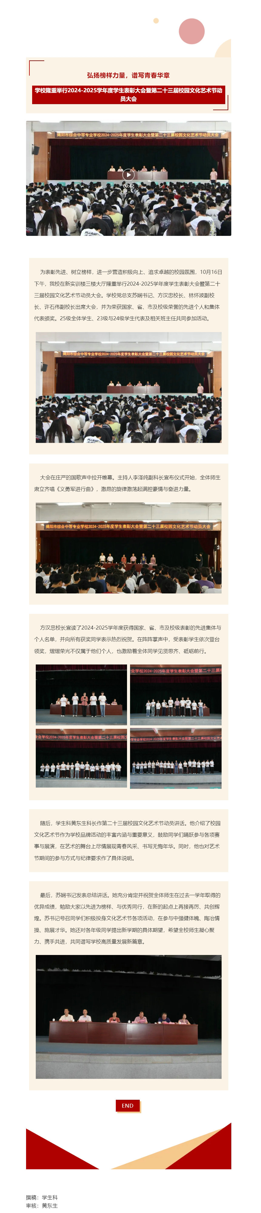 学校隆重举行2024-2025学年度学生表彰大会暨第二十三届校园文化艺术节动员大会