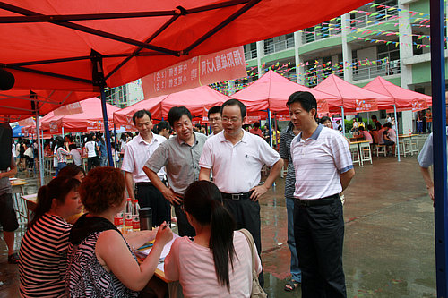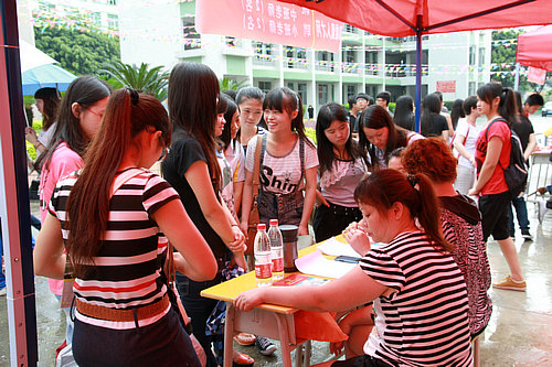 6月19日上午,我校操场上人头攒动,场面热烈, 2012年毕业生供需见面会在此火爆进行,1000多名毕业生竞聘由100多家大型企事业单位提供的2000多个职位。由于供远大于求,许多毕业生理性挑选用人单位,力求选中能给自己带来广阔发展前景的职业。 我校是广东省重点中等职业学校,学生的综合素质历来备受用人单位的称赞。此次供需见面会,参会单位除揭阳、汕头等周边地区的企业外,深圳、东莞等珠三角地区的企业也慕名而来,有2000多个岗位虚位以待。招聘的企事业单位涉及数控、模具、汽修、动漫、幼教、金融、会计、电子商务等数十个行业。我校今年毕业生有1000多人,由于人少岗位多,就业形势十分喜人。其中,数控、模具、汽修、幼教、会计等专业的毕业生最为抢手,早早就被用人单位预订一空。 由于招聘会有不少知名企业参加,引起了求职者的格外关注,我市其他职业院校、技工学校的部分毕业生闻讯也纷纷赶来应聘。