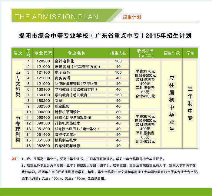 当前位置:主页->信息中心->招生就业科->招生简章->揭阳市综合中等专业学校2015年招生简章