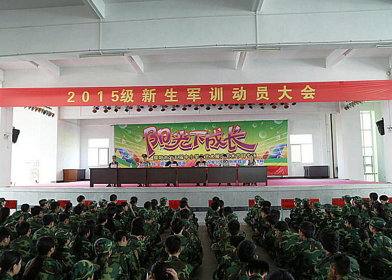 8月29日早上7:40分在学校实训楼三楼大礼堂举行了2015级新生军训动员大会,国防基地训练部领导和学校领导王松亮校长、杨光副校长,以及参与本次军训的教官,全体2015级新生、班主任老师及相关工作人员一起参加了动员大会,杨光副校长做了热情洋溢的动员讲话,接着王松亮校长宣布2015级新生军训开始,一千一百多名2015级新同学按照计划分成十八个军训班走向操场进入了正式的军事训练。军训教官无论从站姿、队列、步伐等基本军姿,还是军体拳练习的技术动作和技术要领都对学生进行了严格的要求和训练。参训学生则无论在烈日下还是细雨中,都认真的按照教官示范的动作要领进行操练,充分展示了综合中专学子团结协作,奋发向上的良好精神风貌。