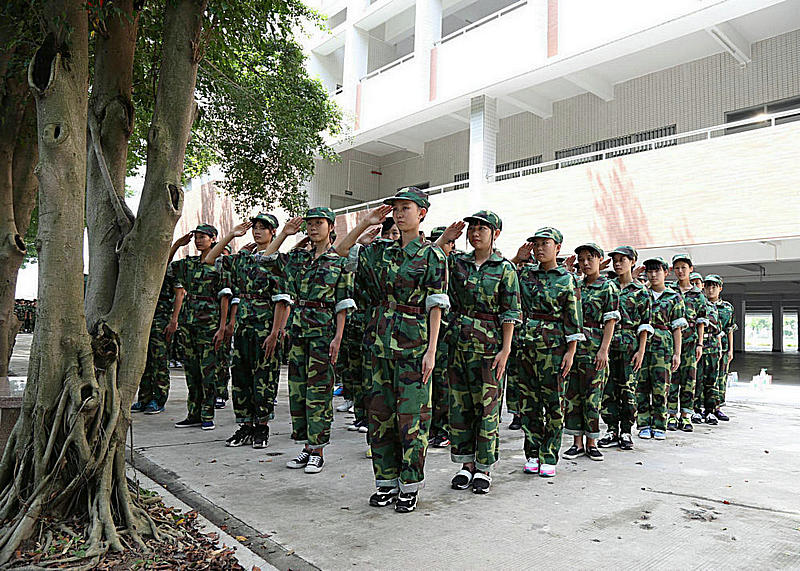 烈日下,细雨中,同学们挺着胸膛,队伍步调一致,动作整齐划一,口号铿锵响亮。为了增强学生的国防意识和爱国主义精神,培养他们艰苦奋斗和坚毅勇敢的优良品质,增强组织纪律性和集体主义观念,尽快适应中专学校的学习和生活,8月27日—9月2日我校举行为期一周的 2015级新生入学教育暨军事训练活动,本次活动得到了某市国防基地训练部的大力支持。