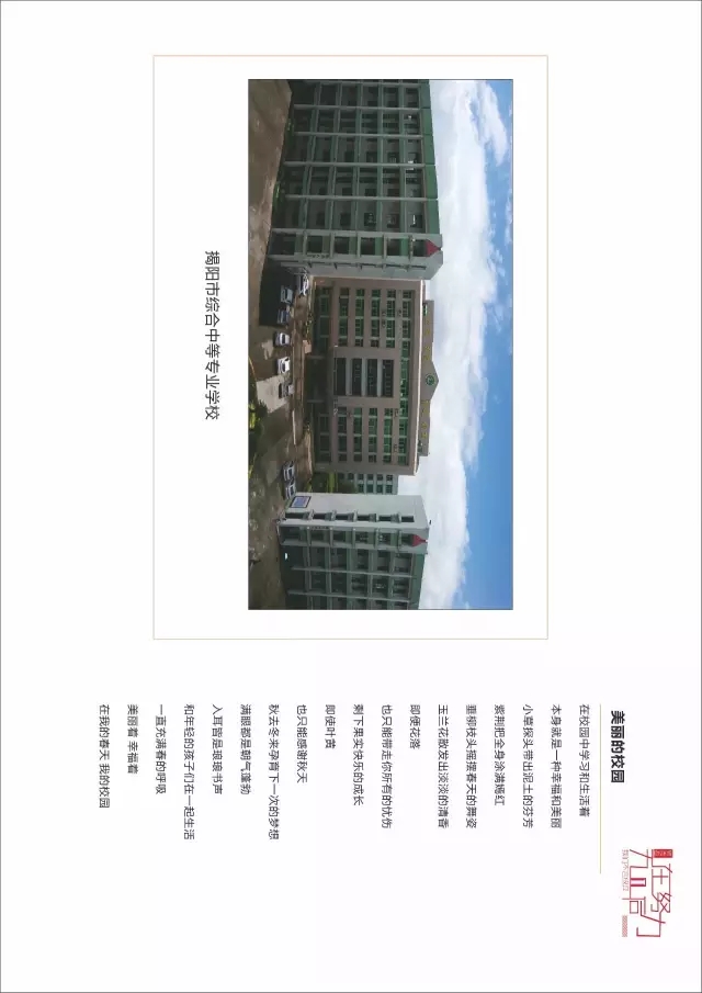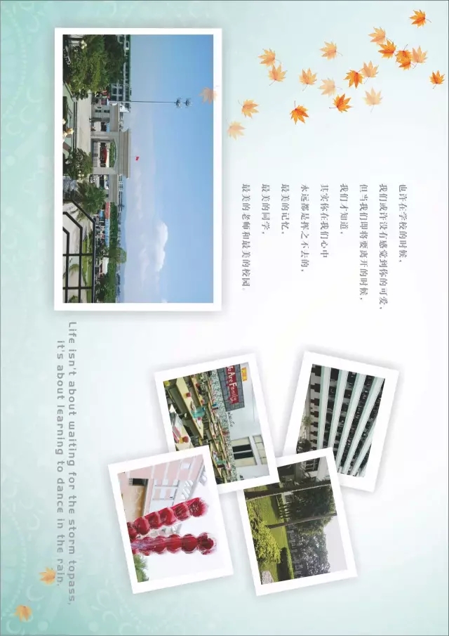 美丽的校园 在校园中学习和生活着 本身就是一种幸福和美丽 小草探头带出泥土的芬芳 紫荆把全身涂满嫣红 垂柳枝头摇摆春天的舞姿 玉兰花散发出淡淡的清香 即便花落 也只能带走你所有的忧伤 剩下果实快乐的成长 即使叶黄 也只能感谢秋天 秋去冬来孕育下一次的梦想 满眼都是朝气蓬勃 入耳皆是琅琅书声 和年轻的孩子们在一起生活 一直充满春的呼吸 美丽着 幸福着 在我的春天 我的校园 这是我校第七届技能节展示项目《校园纪念册》的篇首语,在拍摄中去体会校园,在制作中去掌握技能,在观看中去领悟生活。学生们所制作的《校园纪念册》,让我们一起去领略一下吧!(撰稿:王子旭 李洁 编辑:李洁 审核:杨丹华) PS:为达到最好的观看效果,请把手机横放观看。