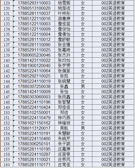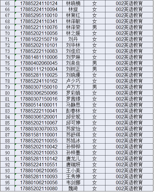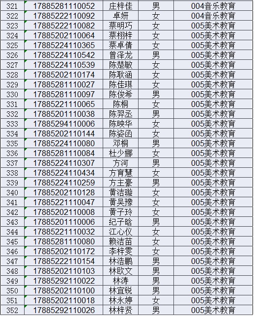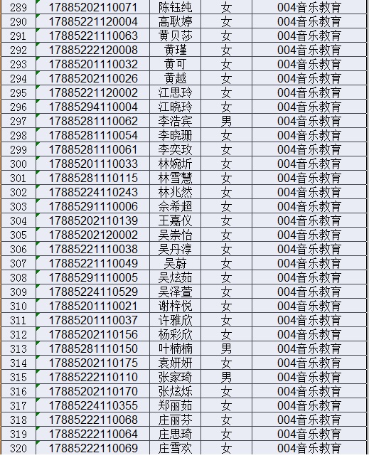 2017年揭阳学院五年一贯制大专新生录取名单