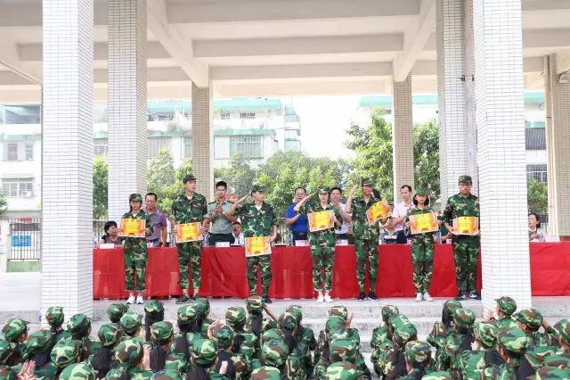 9月8日上午,我校2017级新生军训总结大会在C栋教学楼前隆重举行。学校王松亮校长、黄明浩副校长、杨光副校长、杨丹华副校长及相关行政领导、新生班主任和2017级全体新生参加了总结大会。大会由学校学生科黄东生科长主持。 大会伊始,庄严的国歌响起,全体起立,全场气氛肃静而庄严。国歌结束后,全体2017级新生进行了军训汇报表演。伴随着高亢激昂的奏乐,各方阵队员满怀激情、雄姿英发、口号嘹亮。刺杀表演的迅猛有力,队列展示的井然有序,军体拳的气势如虹,表演方阵的姿态优雅,无一不赢得了大家的肯定与赞美。同学们以高昂的士气、坚定的神情,充分展示了5天军训所铸就的新一届中专生良好的精神风貌。 接着,来自计算机网络1702班的学生代表魏晓畅在代表全体2017届学生发言中向学校领导、老师、教官们表示最衷心的感谢和最崇高的敬意。学生代表说:军训让他们真正体会到军人"流血流汗不流泪,掉皮掉肉不掉队"的吃苦精神和集体主义精神,也体会到作为军人的无比自豪和光荣使命。他们一定会把在军训中养成的良好习惯、严谨作风、优秀品质带到校园的学习和生活中去,认真实践学校领导、老师对我们的敦敦教诲,用自己的青春书写最美的篇章。 学生代表发言完毕之后,杨光副校长宣读了“军训先进班集体”与“军训优秀标兵”表彰名单,与会领导为获奖者进行颁奖。 最后,王松亮校长为大会作军训总结报告。王校长首先代表学校向2017级新生军训取得圆满成功表示最热烈的祝贺,向顺利完成军训任务的全体教官、参训师生致以最亲切的问候,并向在军训中受表彰的先进集体和先进个人表示热烈的祝贺!王校长说:在为期5天的军训中,同学们以饱满的热情、昂扬的斗志积极参加军训,以坚强的意志和吃苦耐劳的精神克服困难,刻苦训练,圆满完成了训练任务。这一成绩的取得,是各位教官辛勤汗水的结晶,也是全体同学、班主任以及各相关部门共同努力的结果。他指出,军训是一次严峻的体力考验,更是一次严峻的毅力考验。并向新生们提出三点要求:一是要树立远大理想,培养科学的世界观、人生观和价值观,立志成才,奋斗不息;二是要珍惜三年的学习生活,志存高远,脚踏实地,实现梦想;三是学会做人,学会共处。王校长希望大家立足当下,放眼未来,志存高远,拼搏进取,用自己的辛勤汗水和不懈努力,铺设成功之路,用实际行动回报父母,报效祖国,演绎出精彩的人生乐章! 广大新生表示将继续发扬军训精神,在下一阶段的学习生活中展示出更优异的表现。(撰稿:王子旭 摄影:王子旭现代教育1601 杨旭涛 大专会计1601 黄杨洙、王涵审核:黄东生)