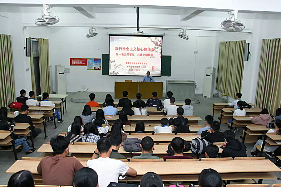 3月28日下午,我校在c104多媒体教室举行了题目为“做一名文明学生,共建文明校园”为主题的青年道德讲堂,讲座由学生科谢锐彬副科长主讲。参加本次讲座的有全校各班级班长、副班长、各社团负责人共200多人。 谢科长表示,中国具有五千年的文明历史,素有“礼仪之邦”美称,“文明”也是社会主义核心价值观的基本内容,当前揭阳也正在建设“贤德揭阳,文明揭阳”,我们要结合学校实际,如何做一名文明的学生,建设文明校园,谈了他的看法。 接着,他指出开学几周后,校园内一小部分同学放松了对自己的要求,一些同学尊师重教思想淡化,不会使用礼貌用语,举止言谈粗俗,大庭广众讲脏话和粗话;不懂谦让互助,仪表仪容不整,有失规范;不讲卫生,个别同学随手乱扔垃圾,有个别男女同学也没有按学校的要求注意“多对多、单对单”接触,影响自身形象也有损学校的形象;有些行为举止看似不严重,但假如不及时制止的话就会影响着个人,班集体,整个校园的形象。 他说,其实我们一些同学把学习文化知识、学习技能放在首位,而常常忽略了文明习惯、社会公德的培养和养成,而讲文明这恰恰从本质上展现出一个人的思想品质,因此加强中职生的养成教育是十分有必要的,也是迫在眉睫的! 随后,谢科长希望每位同学都要提高自身素质,做一个自尊自爱自强的人,有纪律意识,对自己,对班级,对学校,对社会都要有强烈的责任感,并向学生提出几点要求:1、平时要注意仪容仪表整洁、举止有礼。2、行走时,不要低头玩手机,出门在外要遵守交通规则。3、进办公室应先敲门或打招呼,经老师允许后方可入内,不要随便翻阅办公桌上的东西。4、要爱护公共财物,爱护学校的一草一木。5、在上课铃响之前,学生应先进教室,做好准备,静候老师前来上课。6、上课要专心听讲,不做与课本无关的事。7、要爱护照明设备、节约用电,离开教室时应随手关灯。8、要珍惜学校的荣誉,不做有损学校荣誉的事。 最后,谢科长向全校同学发出倡议:希望同学们努力养成良好习惯,以文明的实际行动向家长和老师交上一份满意的答卷,为塑造自己精彩的人生讲文明、做一名文明学生,共建文明校园。 讲座在轻松热烈的气氛中结束,现场掌声不断。谢科长幽默而不失儒雅的讲座让所有的学生满怀激情,并且树立信心。 讲座结束后,学生们都在议论着:文明习惯是同学路上相遇时的微笑,是同学有困难时的热情帮助,是平时与人相处时的亲切,是见到师长时的问好,是不小心撞到对方时的一声"对不起",是自觉将垃圾放入垃圾箱的举动,是看到有人讲粗言烂语时的主动制止,文明是一种品质,文明是一种修养,文明是一种受人尊敬并被大家广泛推崇的行为。 撰稿:谢锐彬