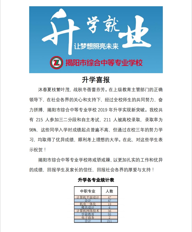 揭阳市综合中等专业学校@版权所有 技术支持:学校计算机信息中心 邮政编码:522021