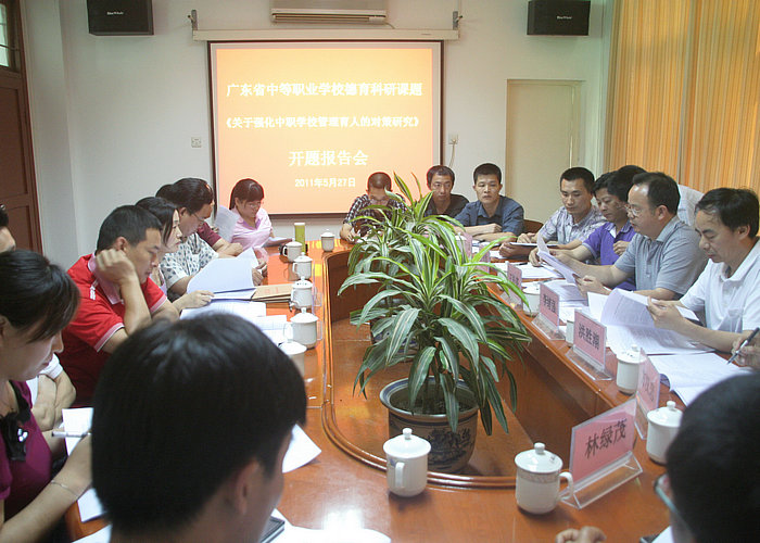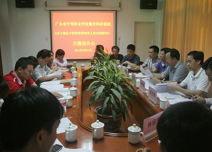 揭阳市综合中等专业学校召开广东省德育科研课题开题报告会 2011年5月27日,我校召开广东省德育科研课题开题报告会,这是我校教育科研的盛事,也是德育改革工作的大事。2010年,我校申报的德育课题--《关于强化中职学校管理育人的实践研究》被省教育厅批准立项,这是我校建校以来首个省级德育科研课题德育课题。也是我校德育研究工作的一次突破,必将进一步提高学校德育的研究水平。 参加开题报告会的有广东省揭阳市教育局教科室主任 李绪强 中学高级教师(正高)、特级教师、教育研科室副主任 黄锐辉 中学高级教师、特级教师、《揭阳教育》杂志责任编辑洪胜潮 中学高级教师、特级教师,我校的行政领导、课题组成员、骨干教师以及科、级组长。 会议由我校主管德育的黄明浩副校长主持。 开题报告会上,揭阳市教育局教科室李绪强主任代表教育局宣读了省教厅批准课题立项书。 课题主持人王松亮校长客观而生动地阐述了该课题的意义和价值、主要内容、重点难点、主要观点、研究目标、研究内容以及要解决的问题、研究的基本方法等。 会议上,揭阳市教育局教科室主任李绪强主任充分肯定了我校该课题选题的意义和价值,对课题研究提出了宝贵建议,希望我校课题组成员深入研究,规范管理,结合学校的实际解决重点、难点问题。要出成绩、出成果、出特色、出经验、出精品,并形成一套具有中职特色、揭阳特色的德育科研模式。 《揭阳教育》杂志责任编辑 洪胜潮 在会上也作了重要讲话。洪编辑从开展课题的及时性、必要性、课题研究的侧重面、课题研究的前景几个方面为我们作出了指导,并对课题组成员进行了鼓励。 揭阳市综合中等专业学校 省级德育课题小组 2011年5月27日