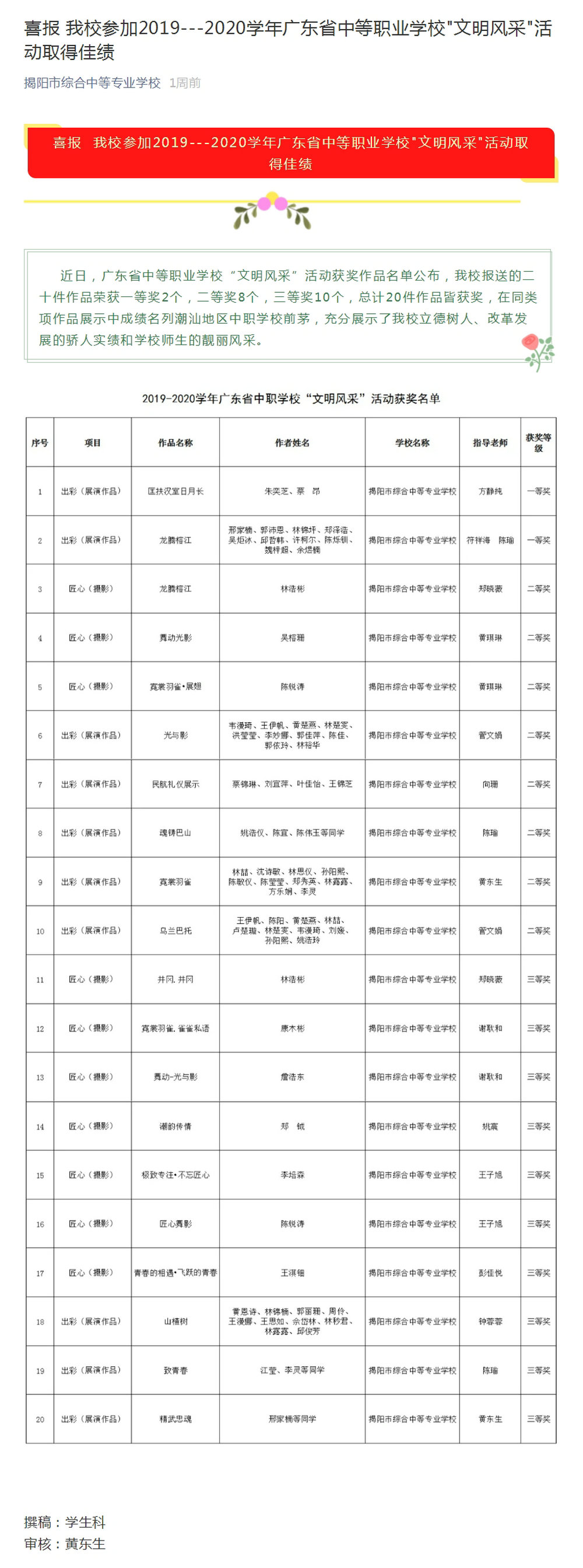 喜报 我校参加2019-2020学年广东省中等职业学校"文明风采"活动取得佳绩
