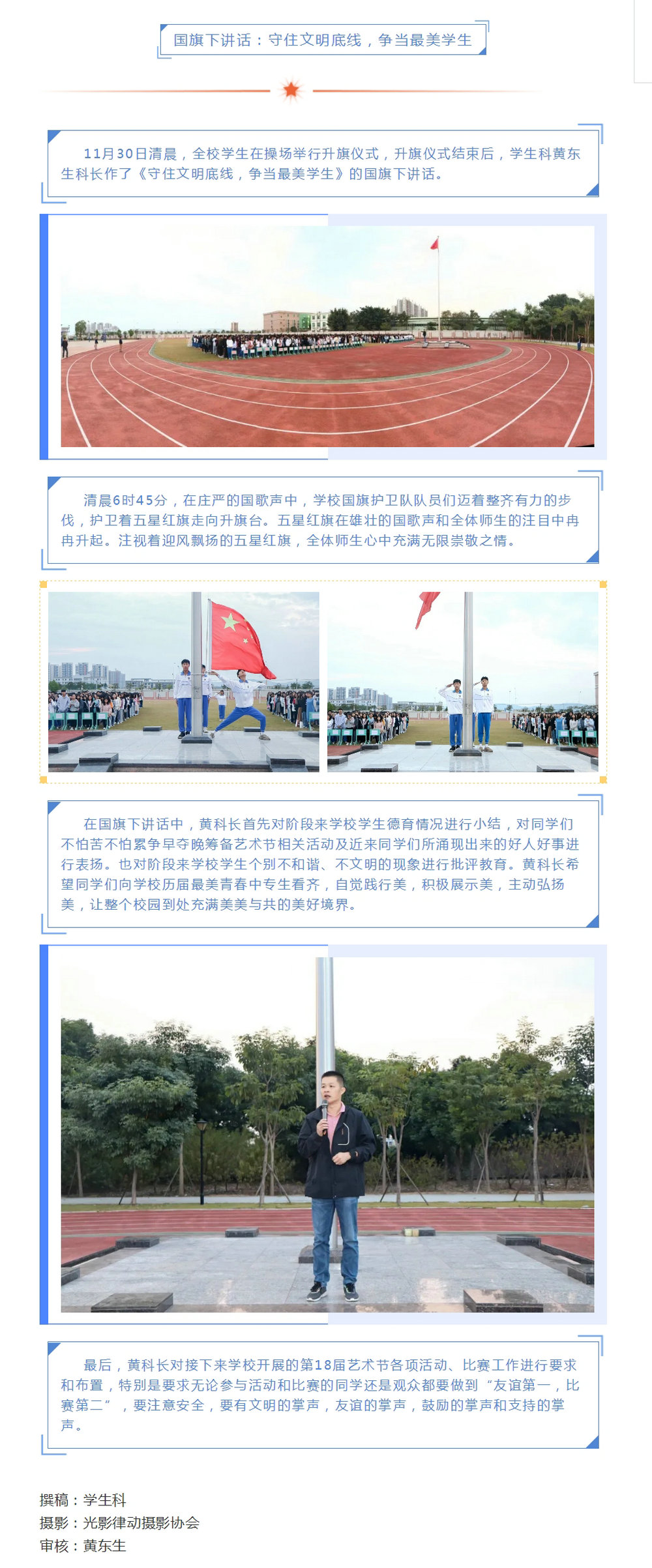 当前位置:主页->信息中心->学生科->校园世界杯(中国)->国旗下讲话:守住文明底线,争当最美学生