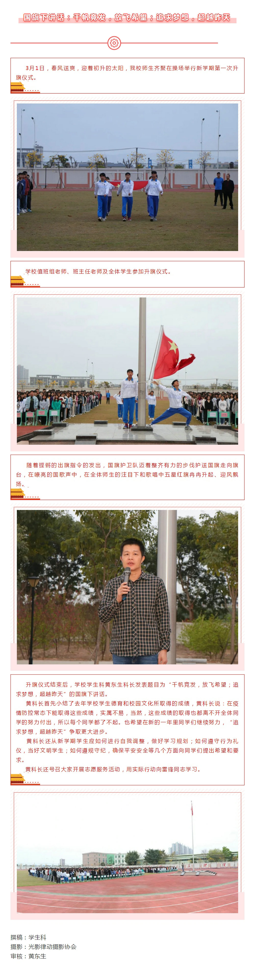 国旗下讲话:千帆竞发,放飞希望;追求梦想,超越昨天