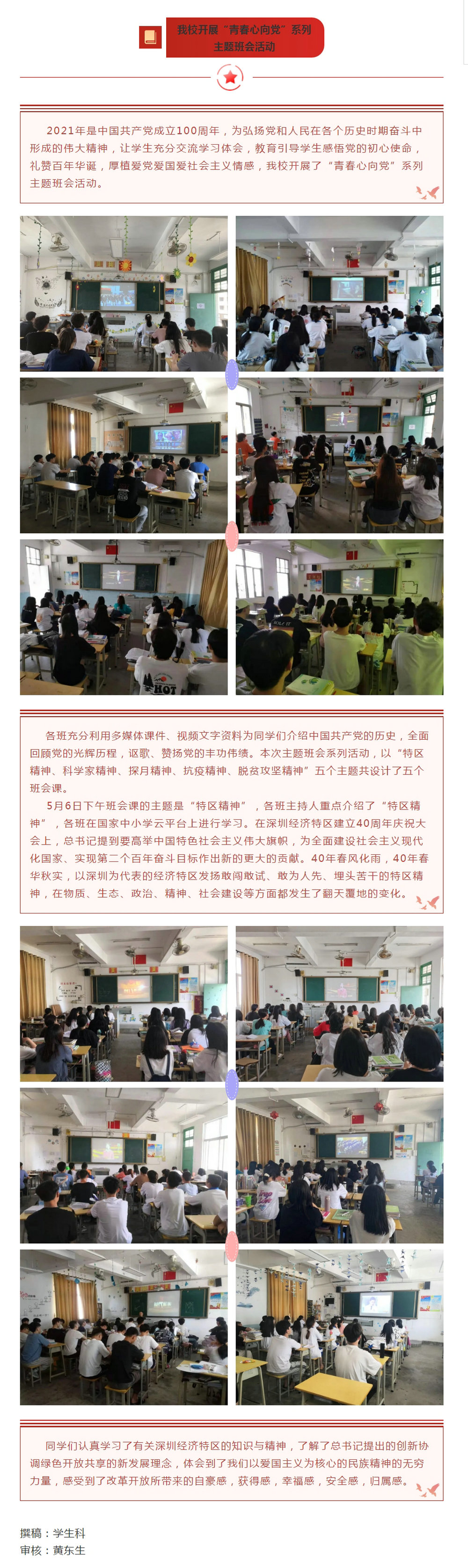 我校开展“青春心向党”系列主题班会活动