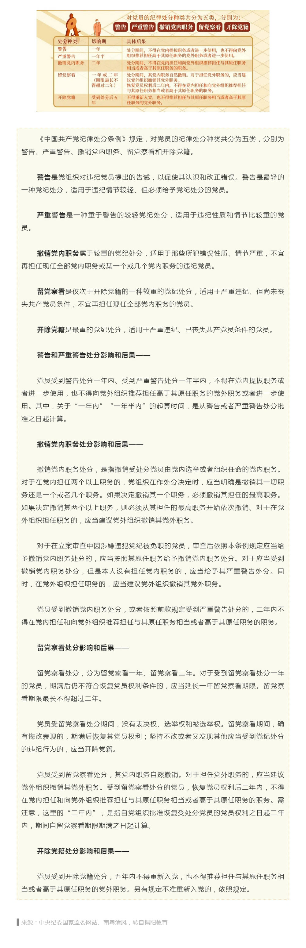 党纪学习教育·每日一课④丨对党员的纪律处分有哪些,影响期各多长(转发)