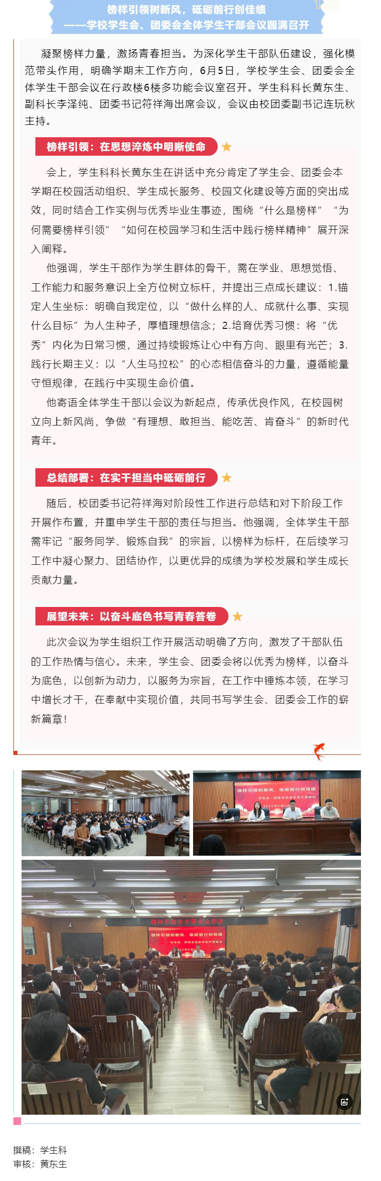 榜样引领树新风,砥砺前行创佳绩——学校学生会、团委会全体学生干部会议圆满召开