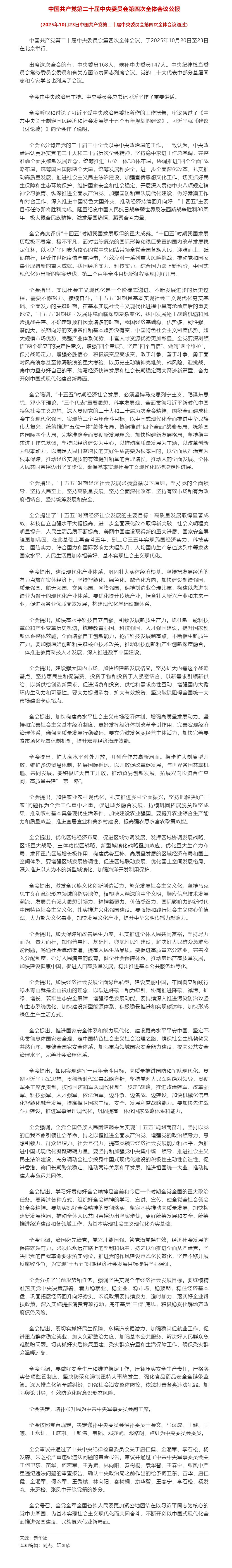 中国共产党第二十届中央委员会第四次全体会议公报(转发)