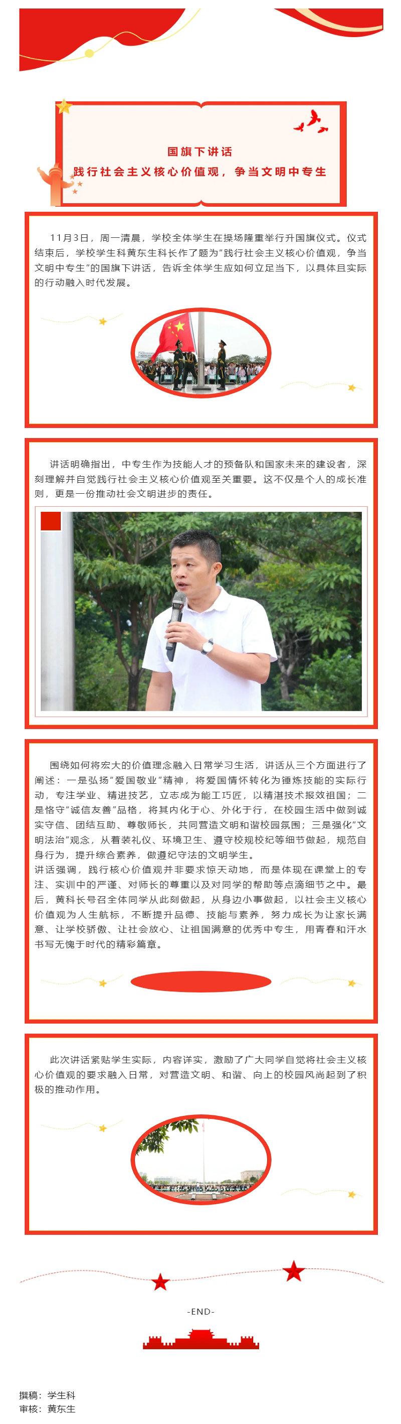国旗下讲话:践行社会主义核心价值观,争当文明中专生