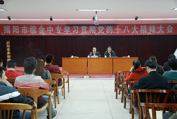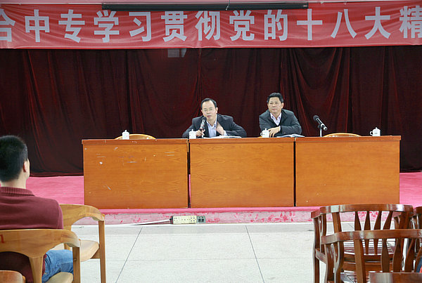 11月23日下午,市综合中专召开全校教职工大会,专题传达学习贯彻党的十八大精神和市委五届三次全会精神。会上,党支部书记王松亮同志传达了本月19日在市政府会议厅收听收看广东省传达贯彻党的十八精神大会精神以及20日召开的市委五届三次全会精神和陈绿平书记的重要讲话精神。