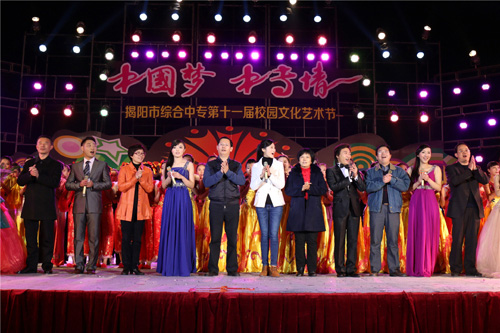 昨天晚上,市综合中专欢歌笑语,鼓乐喧天,热闹非凡,该校第十一届校园文化节“中国梦。中专情”文艺晚会在此隆重举行。市委书记、市人大常委会主任陈绿平到现场观看晚会,并上台同现场师生们深情合唱《歌唱祖国》(见图。杨继斌摄)。