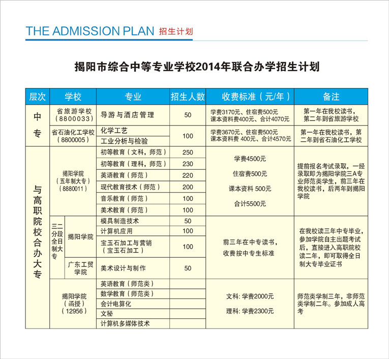 揭阳市综合中等专业学校2014年招生简章