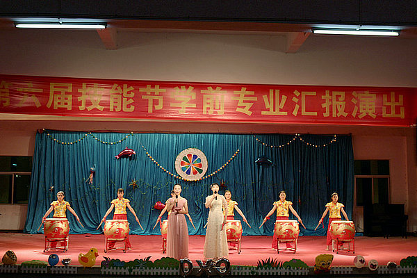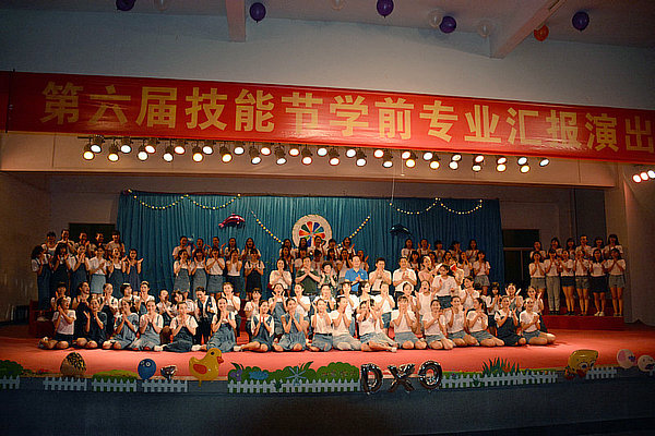 在我校第六届技能节来临之际,为给13级大专学前专业的学生一个展现自我的平台,也为了给他们的中专校园生活画上一个完美的句号,同时喜迎即将到来的美好大学生校园生活。5.24号晚7:30分我校特地在新实训楼三楼提前举办了技能节项目之一《13级大专学前教育毕业汇演——青春不散场》。
