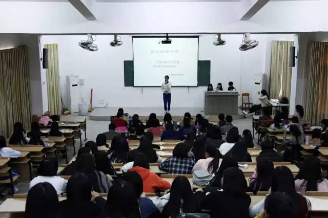 英语教育(师范)的学生正在进行英语朗诵比赛