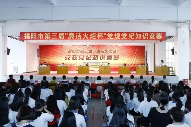 为了教育引导全市党员尊崇党章、遵守党规, 促使各级党员干部更加自觉地遵守党章党规党纪。2017年6月15日下午,揭阳市参加省第三届“廉洁火炬杯”党规党纪知识竞赛集训队模拟练习赛在揭阳市综合中等专业学校实训楼三楼隆重举行。