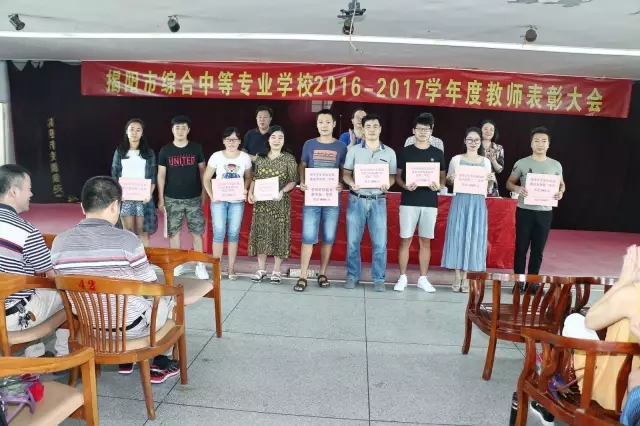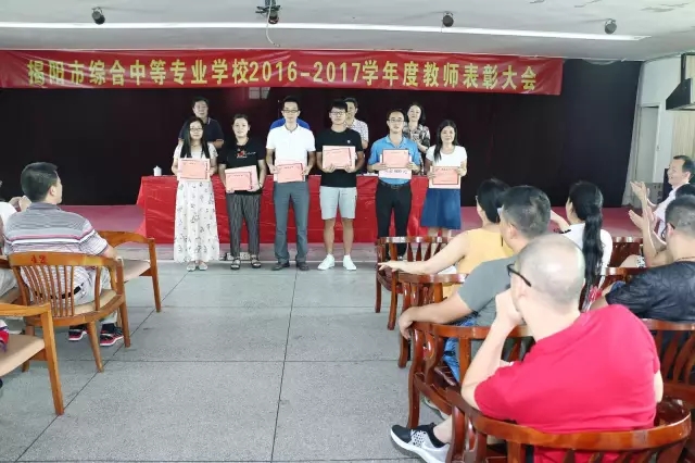 大会首先由杨光副校长宣读2016-2017学年度获得各项优秀的教师名单。分别是优秀教师15人,优秀班主任6人,省技能竞赛获奖老师10人。学校领导为这些优秀的教师颁发了荣誉证书和奖金。