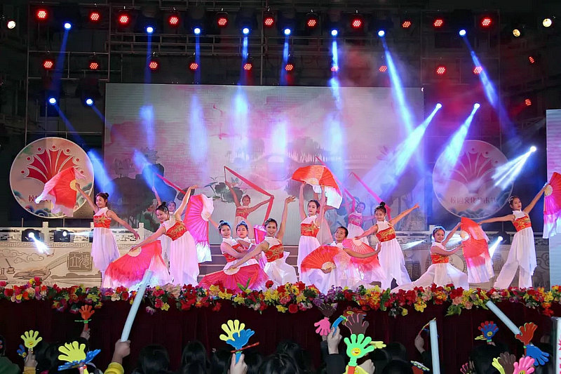 晚会第一个节目是学校艺术中心编排的潮州大锣鼓《龙腾揭阳》,节目具有浓厚的潮汕艺术色彩,场面恢宏壮观,充分表达了中专学子对“盛世中华”的美好祝愿,展现了揭阳独特的潮汕文化传统,也向所有关心和支持学校发展的领导充分展现了“立德有为,求是创新”的中专精神。随后,学前教育专业的学子们在老师指导下编排的节目——《天浴》、《雨林》、《我等你》均展现了他们较高的文化素养、深厚的艺术功底;音乐教育专业的学子们所演奏的《克罗地亚狂想曲》,更是第一次把古筝与电子钢琴和打击鼓联合进行演奏,把中国传统乐器与西洋乐器和西洋曲目相结合,收到了非常独特新颖的效果,充分展现了中专学子们勇于创新、敢于开拓的艺术精神;艺术中心的学子们所表演的舞蹈《盛世鸿姿》和潮乐《红梅报春》,展现了对传统文化的传承与发扬光大;语言类节目诙谐幽默的演出,使台下观众欢声笑语、掌声一片,表达了同学们对生活的热爱、对美好未来的期盼。武术表演健儿们一显身手,动静兼备、刚柔并济、内外兼修。《欢乐的那达慕》,学校合唱团用他们美妙的声音,飞扬着校园不朽的神韵。最后,师生同唱的歌舞演出《不忘初心》,将现场气氛推向了最高潮,充分展现了中专学子与老师的师生深厚感情,同时也展现了中专学子的青春活力,展现了当代青年的风采。在全校师生的欢呼声中,晚会落下了帷幕。