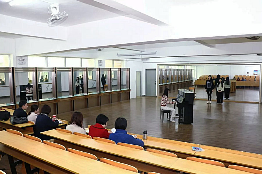 此次考核为期两天,从2018年1月18日到1月19日,共有来自2016级的学前教育专业和2015级、2016级音乐教育专业的全体学生参加,开设考场为新实训楼三楼舞台、五楼多功能室及六楼舞蹈室,参与评委老师16人。考核以“弹唱跳”训练成果为核心,分设了声乐、琴法、舞蹈等三个项目,内容综合性极强。在学生专业考核成绩评定上,采取了课程成绩由多位专业老师平均得分评定的方法。