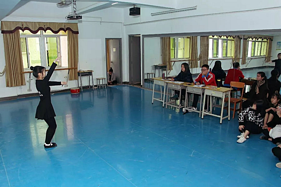 新实训楼六楼舞蹈室进行的舞蹈考核项目