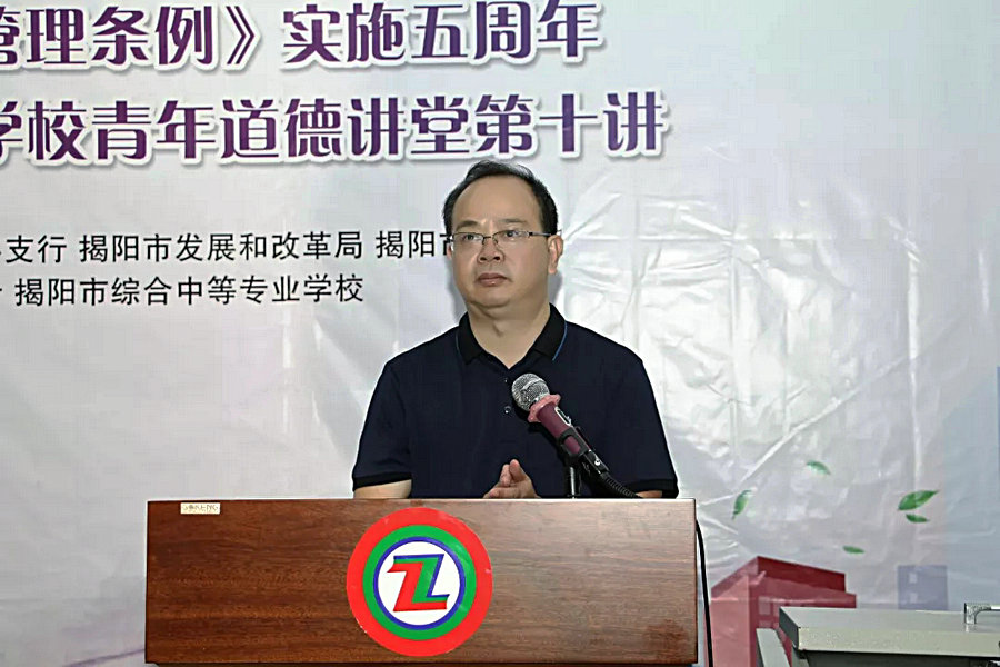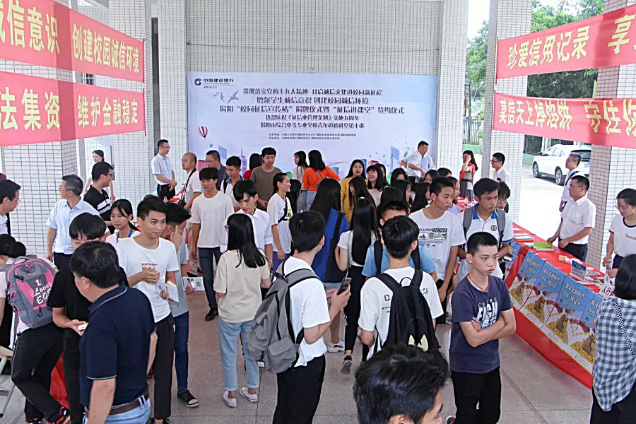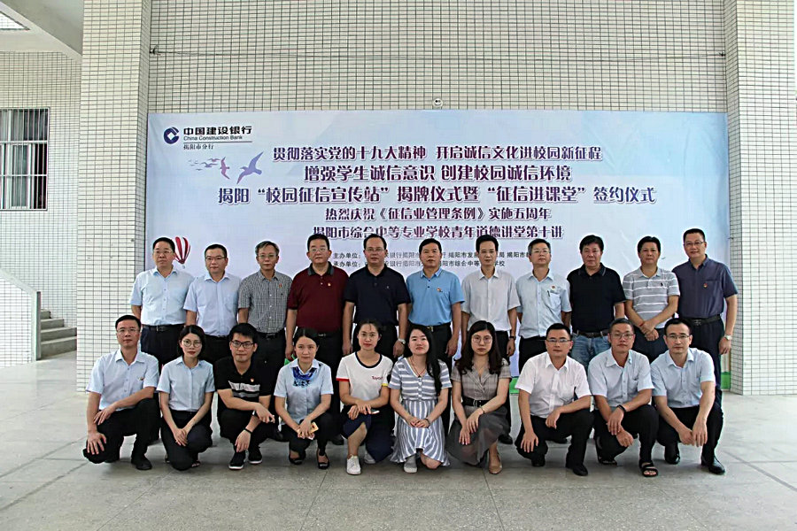 6月12日上午,中国人民银行揭阳市中心支行、揭阳市发展和改革局、揭阳市教育局和揭阳市建设银行在我校举办“诚信文化教育进校园”暨“校园征信宣传站”授牌活动。中国人民银行揭阳市中心支行李新耀行长、姚洪生副行长、林寿武副行长,揭阳市发展和改革局刘伟华科长,揭阳市教育局林晓畅科长,揭阳市建设银行陈建辉行长和我校王松亮校长、黄明浩副校长、杨光副校长等领导及近三百名师生代表出席了本次活动。