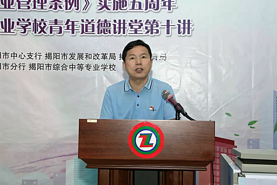 首先,我校王松亮校长发表致辞。他说,青少年是国家和民族发展的未来, “诚信”是社会主义核心价值观的基本内容之一, 加强青少年诚信教育不仅有助于青少年道德养成和健康成长, 更关乎经济的持续健康发展, 关乎社会的和谐稳定, 关乎国家的兴旺发达, 关乎民族的强盛振兴, 具有重要的现实意义和深远的历史意义。市综合中专自建校以来,高度重视校风、教风、学风建设,重视学生的道德教育。不断加强师德师风建设,强化诚信执教、为人师表理念,让教师率先树立信用意识,通过教师的言传身教,以及组织开展丰富多彩的诚信道德教育活动,提高了学生在诚信道德教育中的主体作用,提升了学生的诚实守信水平。接下来,我们将以本次活动为契机,借助市人民银行的帮助,在学生中广泛开展以“诚信教育”为主题的系列活动,将诚信文化教育渗透到校园中,引导学生诚信做人、积累良好信用,打造干事创业的信用基础。诚信教育不仅是我们今后即将开设的选修课,还是形成完善健康人格、高尚道德情操的必修课。王校长告诫学生们:希望大家利用好人生中最美好的时光,努力学习科学文化知识,努力塑造完美人格,努力学会诚信做人。