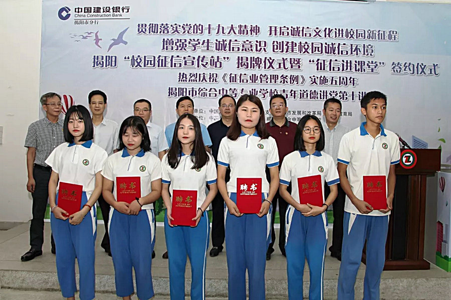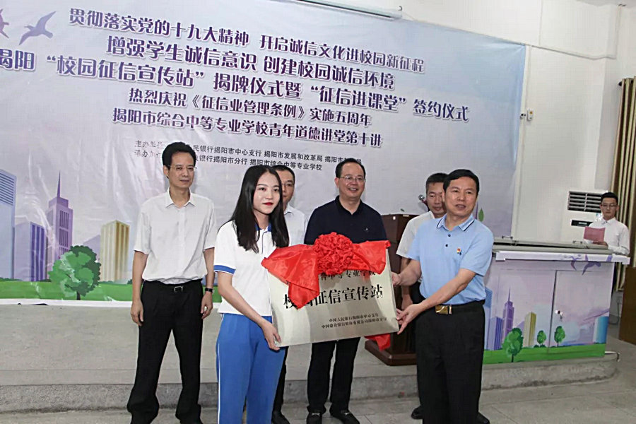 接下来,中国人民银行揭阳市中心支行向我校“校园征信宣传站”授牌。