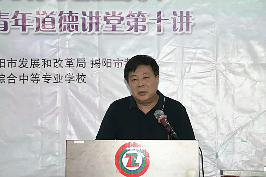 中国人民银行揭阳市中心支行林寿武副行长、揭阳市综合中等专业学校杨光副校长共同为深化“行校共建”签订协议书,随后杨光副校长代表学校接受市人行的赠书并致感谢辞。