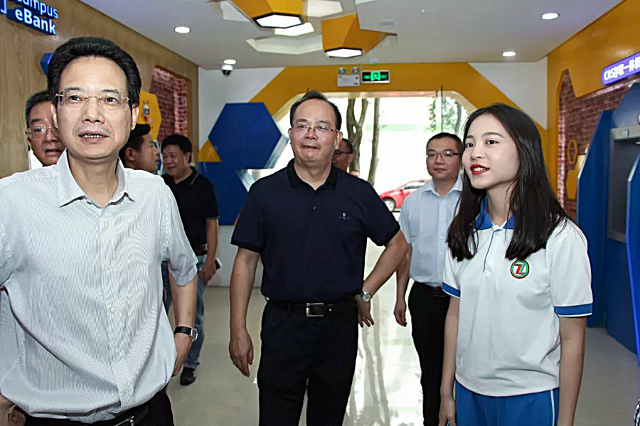 学校领导还带着中国人民银行揭阳市中心支行、揭阳市发展和改革局、揭阳市教育局的各位领导参观了学校各场所,增进他们对学校的办学特色和专业特点的了解。