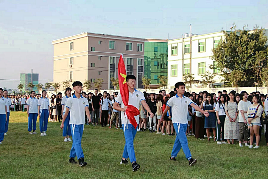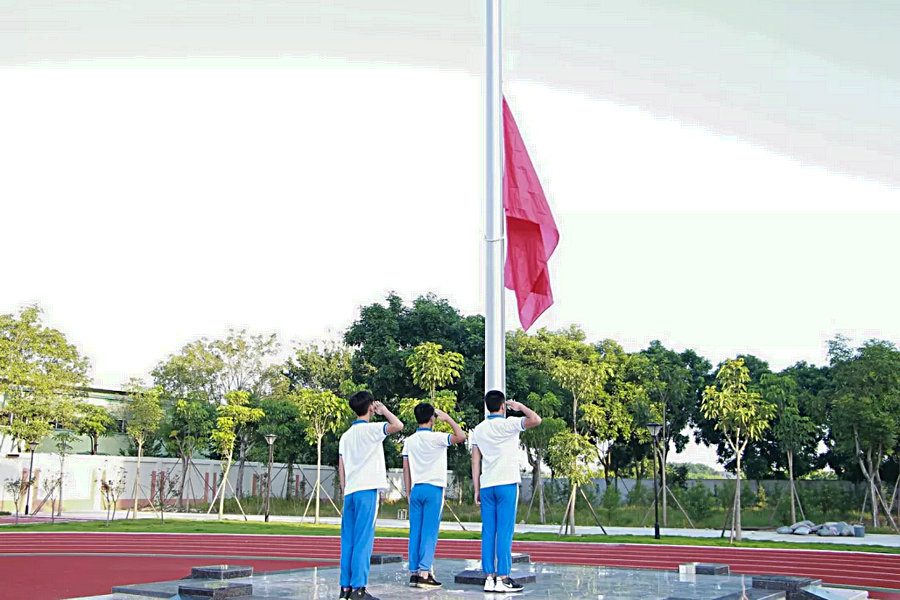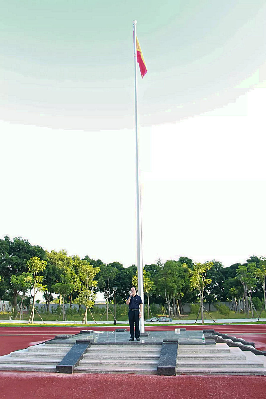 “升国旗,奏国歌,敬礼!”随着口令,雄壮的《义勇军进行曲》奏响。旗手振臂一挥将国旗展向天空,鲜艳的五星红旗迎着初升的朝阳冉冉升起,飘扬在校园上空,孕育出蓄势待发的正能量。