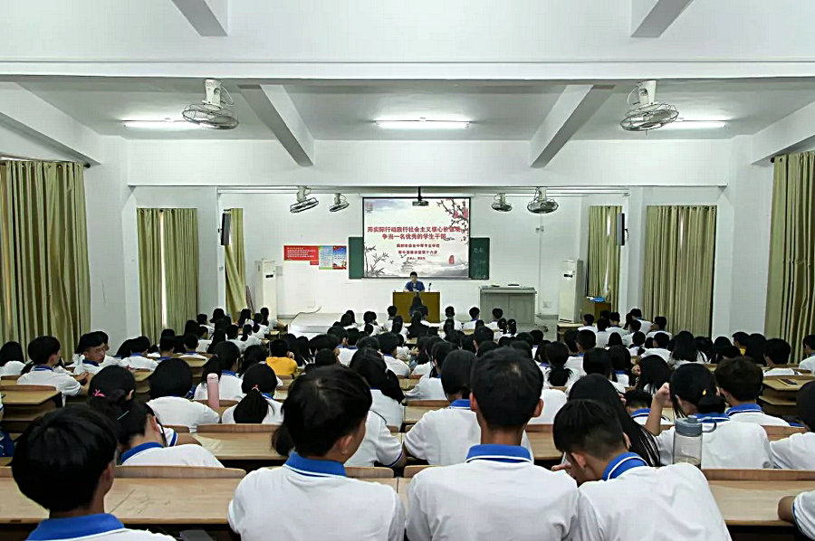 为更好提高培育和践行社会主义核心价值观的实效性,使榜样的力量更好地传递,10月23日,我校青年道德讲堂第十六讲在教学楼C栋多媒体大教室举行,本次讲座主题为:“用实际行动践行社会主义核心价值观,争当一名优秀的学生干部”,由学生科黄东生科长主讲。学校团委、学生会全体学生干部、青年志愿者、各社团负责人、各班班长、团支书参加了活动。