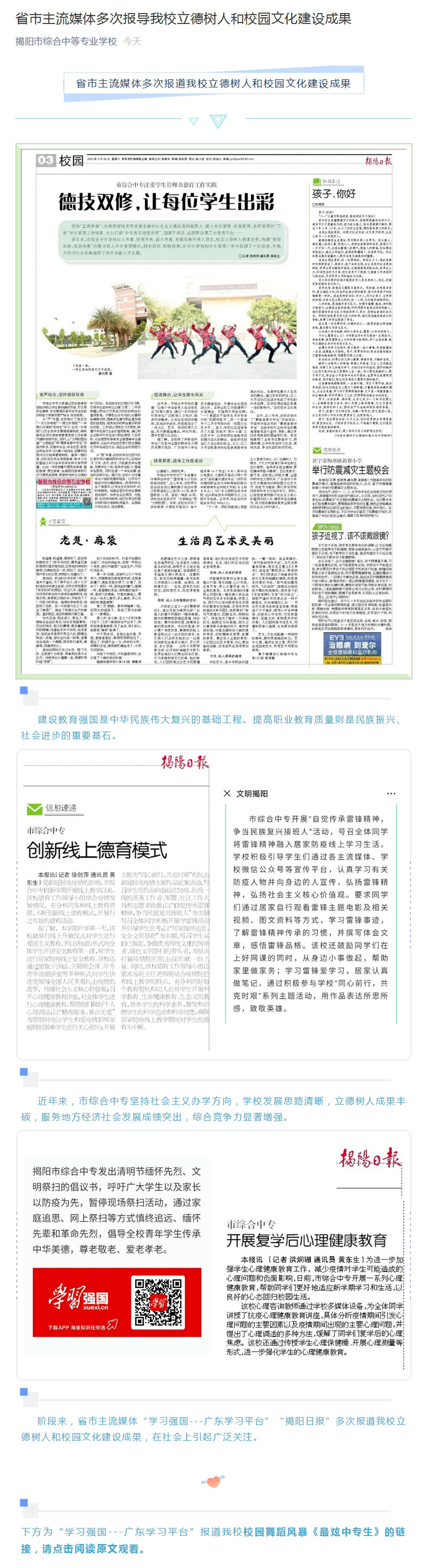 省市主流媒体多次报导我校立德树人和校园文化建设成果