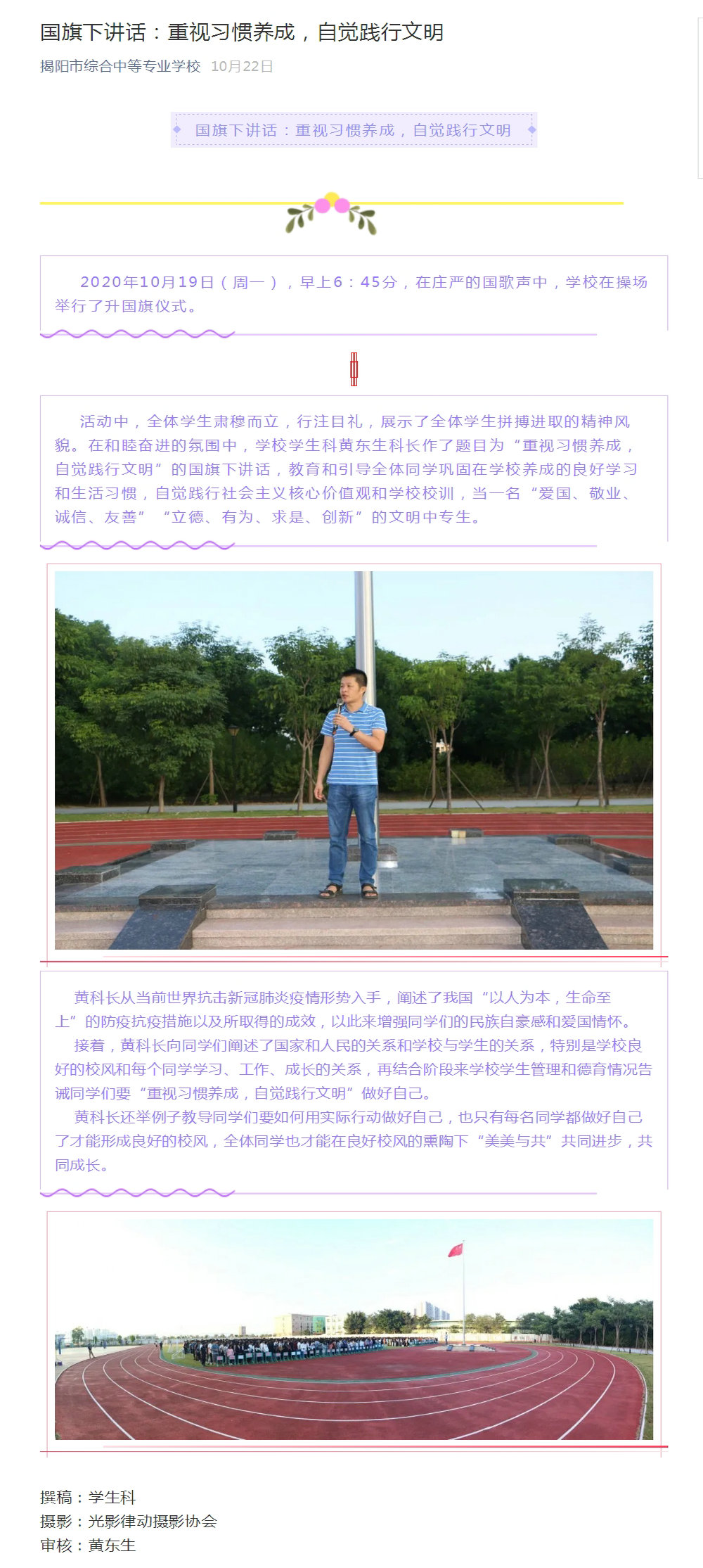 国旗下讲话:重视习惯养成,自觉践行文明