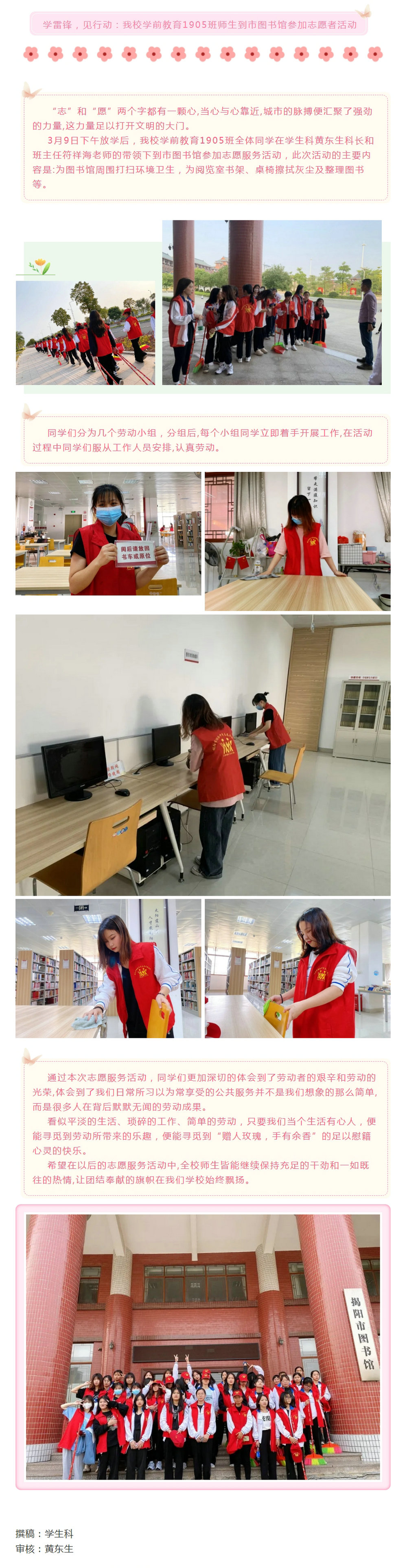 学雷锋,见行动:我校学前教育1905班师生到市图书馆参加志愿者活动