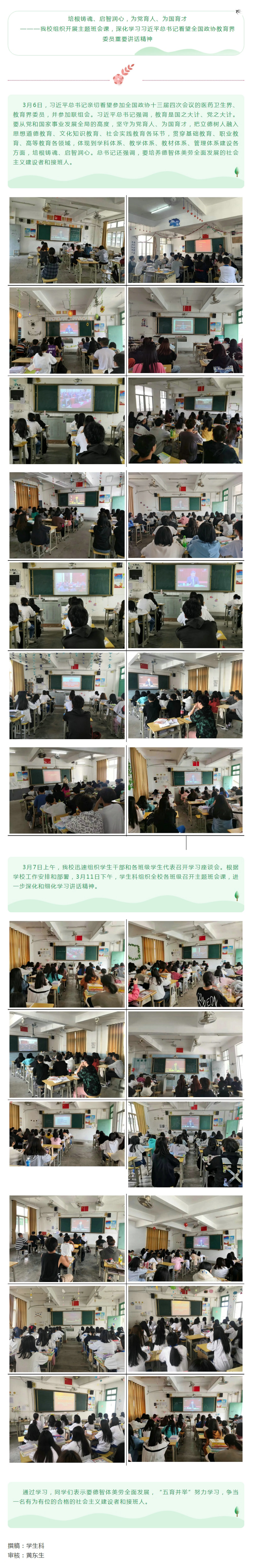 我校组织开展主题班会课,深化学习习近平总书记看望全国政协教育界委员重要讲话精神