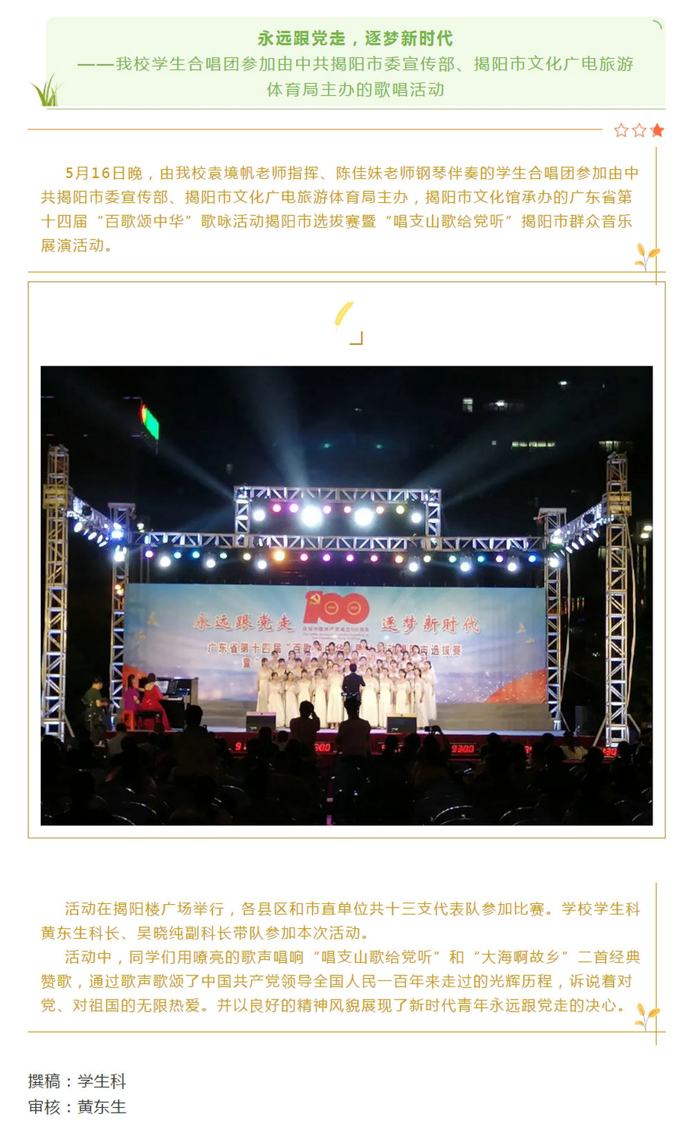 我校学生合唱团参加由中共揭阳市委宣传部、揭阳市文化广电旅游体育局主办的歌唱活动